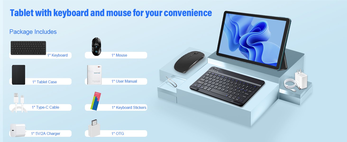 Das VASOUN-Tablet-Set mit Tastatur und Maus ist eine tolle Entscheidung! Die 10,1-Zoll-Anzeige ist scharf, und die Tastatur tippt sich super angenehm.